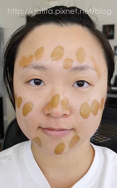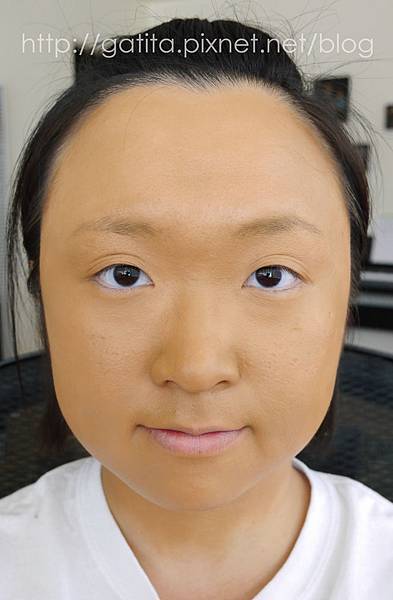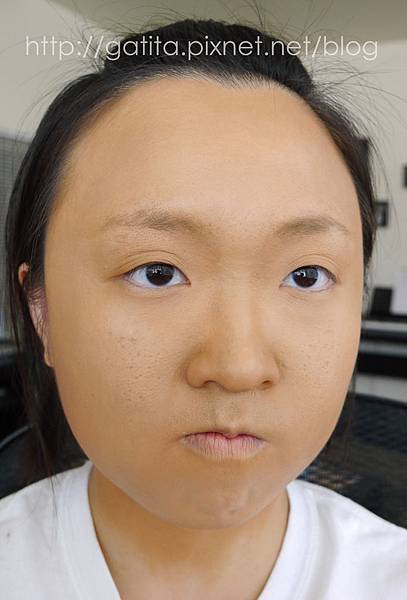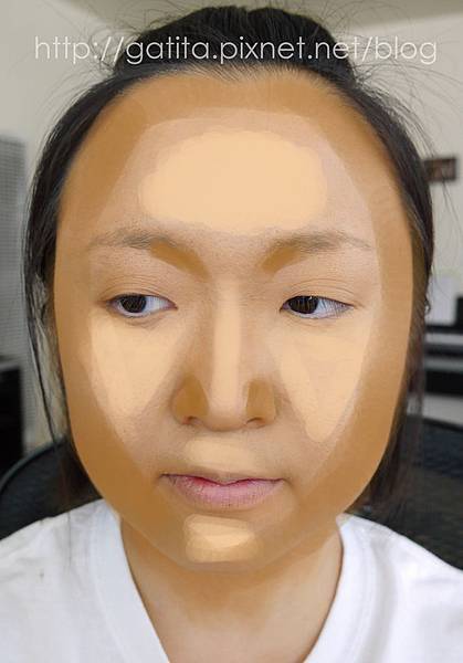 然後畫了又以後覺得眼下白白的,就乾脆把額頭、鼻樑、下巴、臉頰也用Photoready打亮(圖中米白處)
