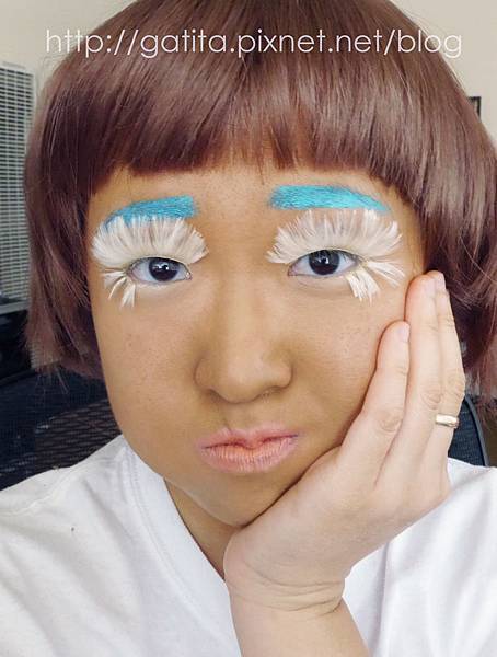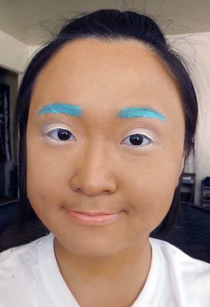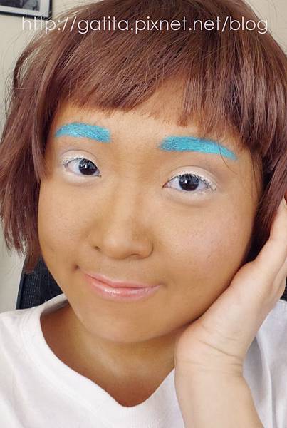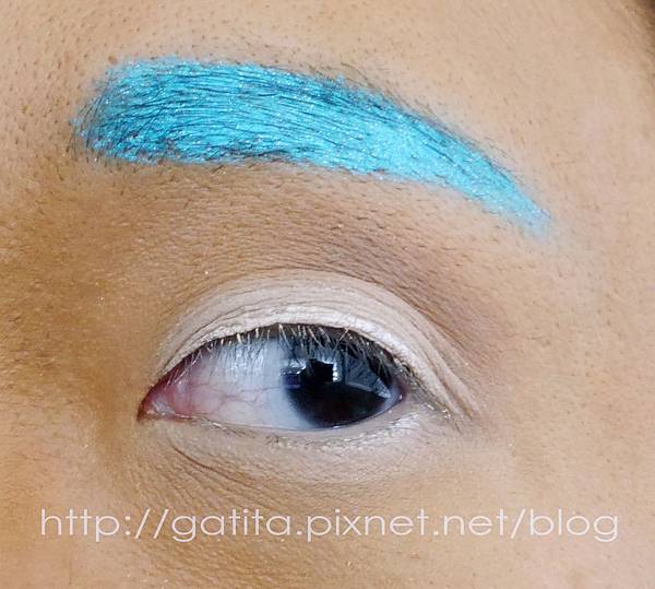 我本來以為水藍色可能無法蓋掉眉毛,沒想到多上幾層讓它有點結塊後遮蓋力超強,顯色度也拔群