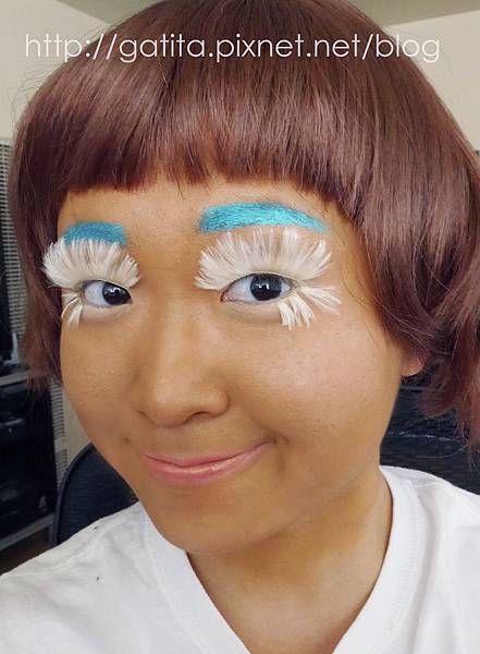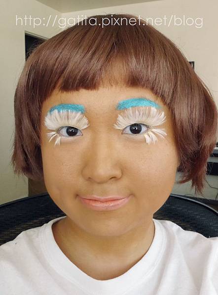 拍到後來想看看沒有假睫毛會不會比較像薑餅人,於是把它拆了