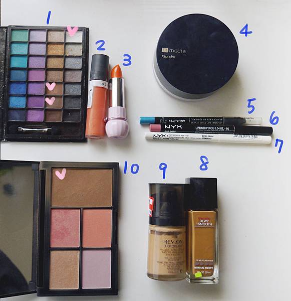 今天用到的彩妝品: